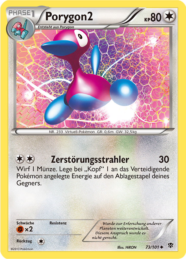 | Kaufen? | Kaufen Sie Ihre Porygon2 Pokemon-Karte aus dem Plasma-Blaster-Erweiterung. |