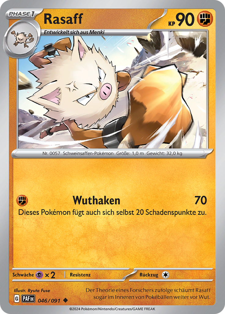 | Kaufen? | Kaufen Sie Ihre Rasaff Pokemon-Karte aus dem Paldeas Schicksale-Erweiterung. |
