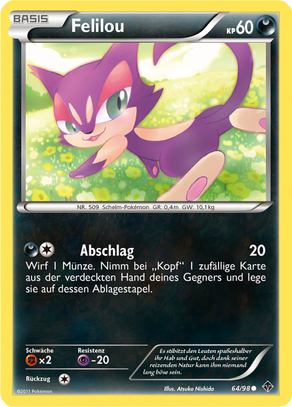 | Alle Karten | Sehen Sie alle Felilou-Pokémonkarten in einer Übersicht. |