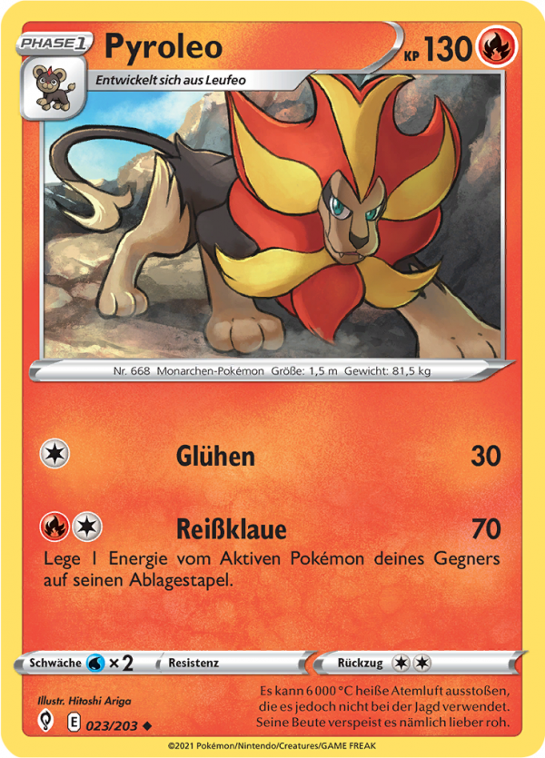 Alle Karten Sehen Sie alle Pyroleo-Pokémonkarten in einer Übersicht.