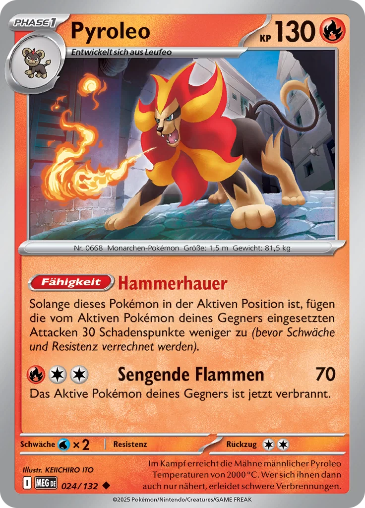 | Kaufen? | Kaufen Sie Ihre Pyroleo Pokemon-Karte aus dem Mega-Entwicklung-Erweiterung. |