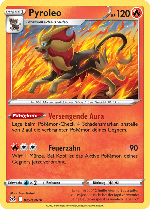 | Kaufen? | Kaufen Sie Ihre Pyroleo Pokemon-Karte aus dem Verlorener Ursprung-Erweiterung. |