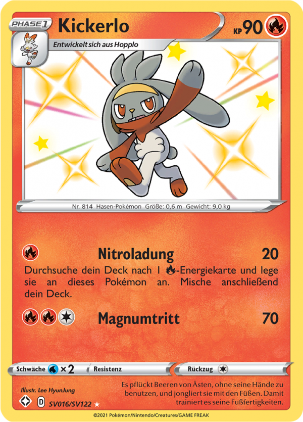 | Kaufen? | Kaufen Sie Ihre Kickerlo Pokemon-Karte aus dem Glänzendes Schicksal - Schillernde Schatzkammer-Erweiterung. |