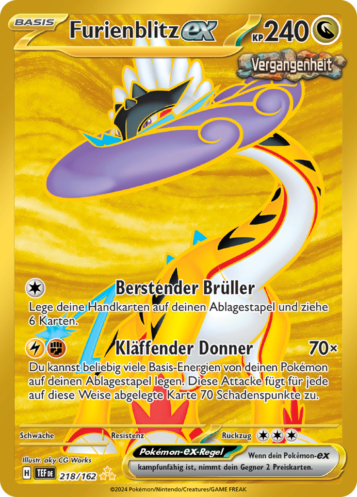 | Kaufen? | Kaufen Sie Ihre Furienblitz-ex Pokemon-Karte aus dem Gewalten der Zeit-Erweiterung. |