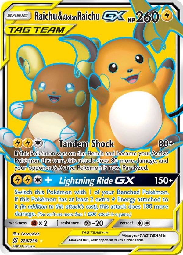 | Kaufen? | Kaufen Sie Ihre Raichu & Alolan Raichu-GX Pokemon-Karte aus dem Unified Minds-Erweiterung. |