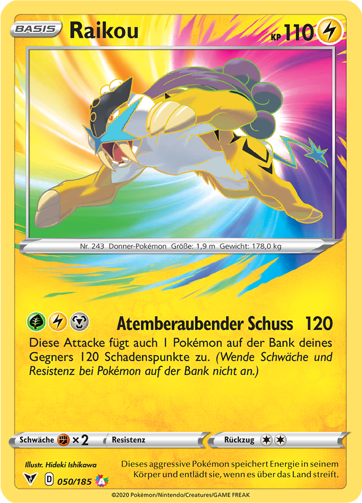 | Kaufen? | Kaufen Sie Ihre Raikou Pokemon-Karte aus dem Farbenschock-Erweiterung. |