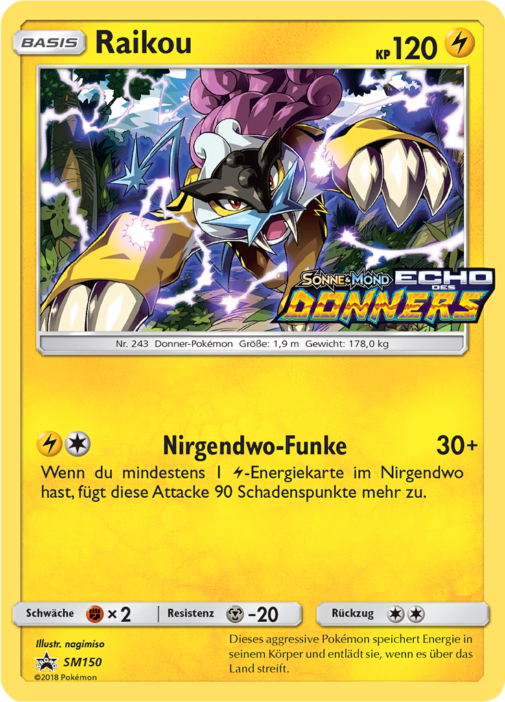 | Kaufen? | Kaufen Sie Ihre Raikou Pokemon-Karte aus dem Sun & Moon Promos-Erweiterung. |