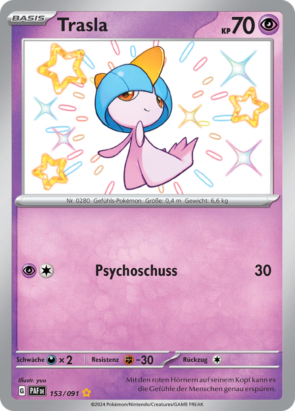 | Kaufen? | Kaufen Sie Ihre Trasla Pokemon-Karte aus dem Paldeas Schicksale-Erweiterung. |