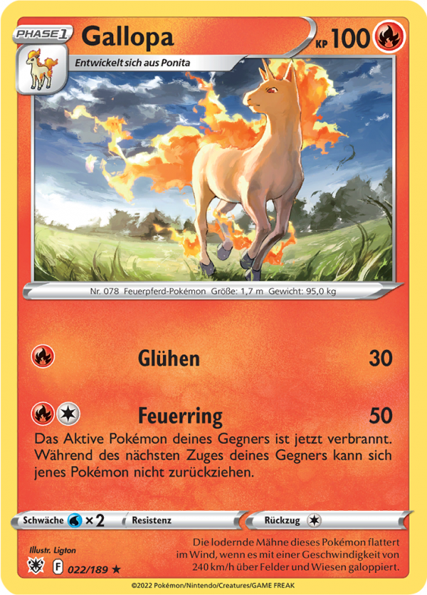 | Kaufen? | Kaufen Sie Ihre Gallopa Pokemon-Karte aus dem Astralglanz-Erweiterung. |