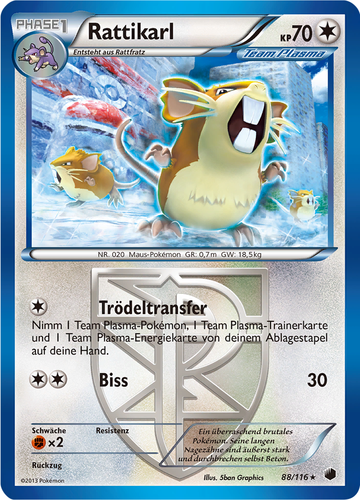 | Kaufen? | Kaufen Sie Ihre Rattikarl Pokemon-Karte aus dem Plasma-Frost-Erweiterung. |