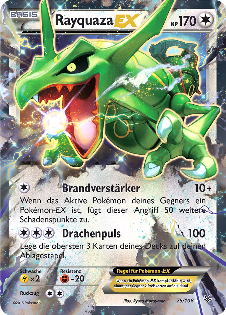 | Kaufen? | Kaufen Sie Ihre Rayquaza-EX Pokemon-Karte aus dem Drachenleuchten-Erweiterung. |