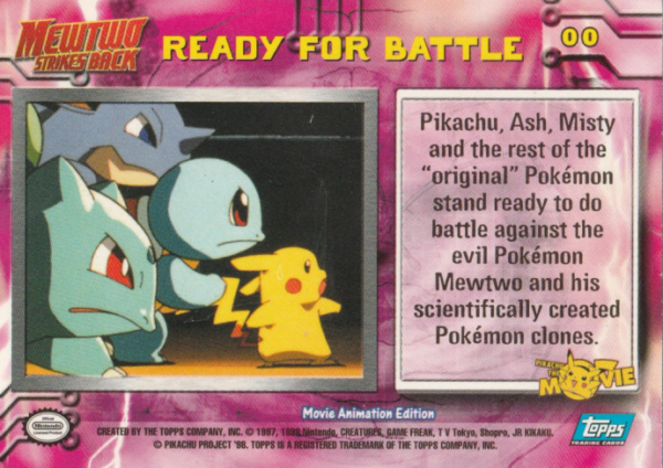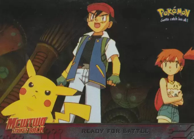 Pikachu, Ash, Misty and the rest of the ‘original’ Pokémon stand ready to do battle against the evil Pokémon Mewtwo and his scientifically created Pokémon clones.
