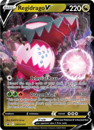 | Kaufen? | Kaufen Sie Ihre Regidrago V (Alternate Full Art) Pokemon-Karte aus dem Silver Tempest-Erweiterung. |