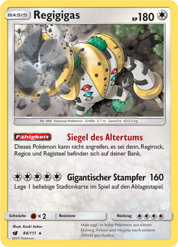 Kaufen? Kaufen Sie Ihre Regigigas Pokemon-Karte aus dem Aufziehen der Sturmröte-Erweiterung.