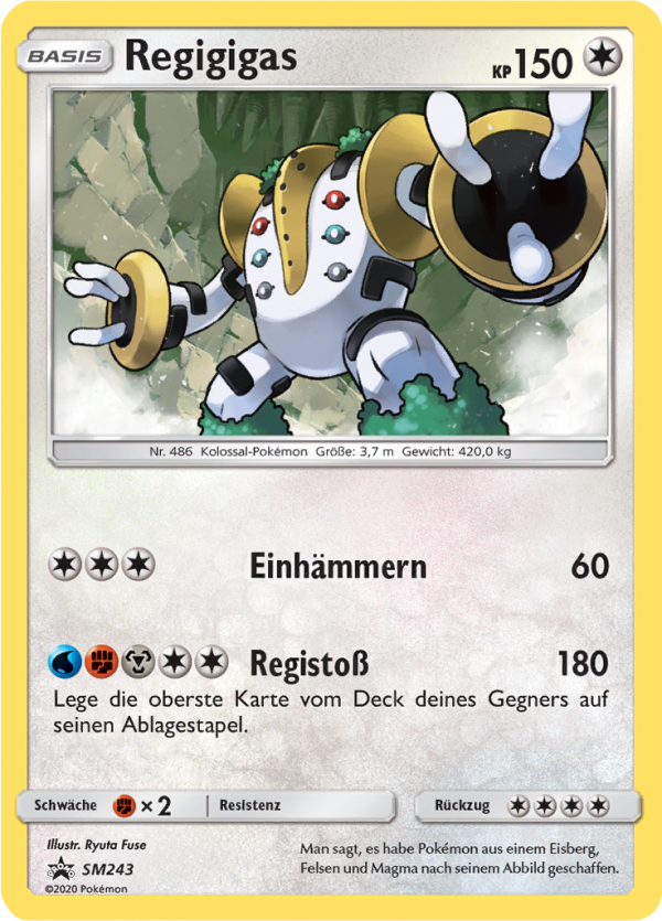| Kaufen? | Kaufen Sie Ihre Regigigas Pokemon-Karte aus dem Sun & Moon Promos-Erweiterung. |
