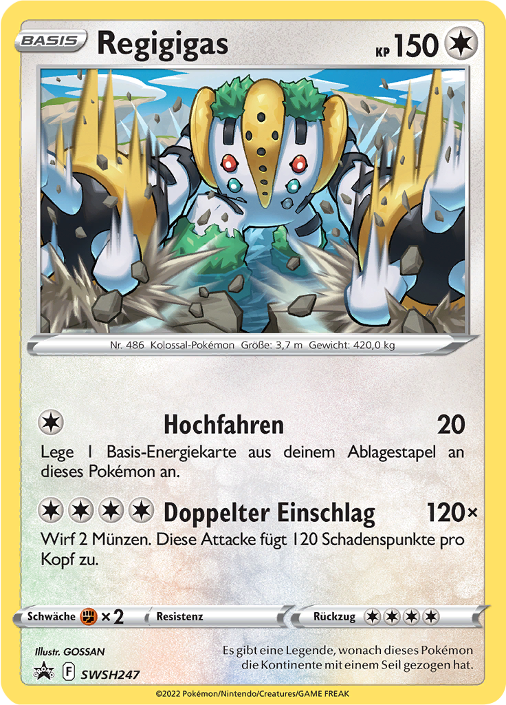 | Kaufen? | Kaufen Sie Ihre Regigigas Pokemon-Karte aus dem Schwert & Schild Promos-Erweiterung. |