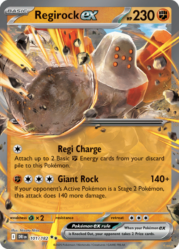 | Kaufen? | Kaufen Sie Ihre Regirock ex Pokemon-Karte aus dem Destined Rivals-Erweiterung. |