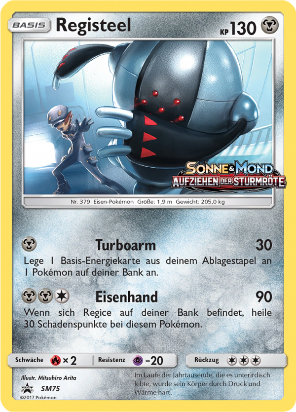 | Kaufen? | Kaufen Sie Ihre Registeel Pokemon-Karte aus dem Sun & Moon Promos-Erweiterung. |