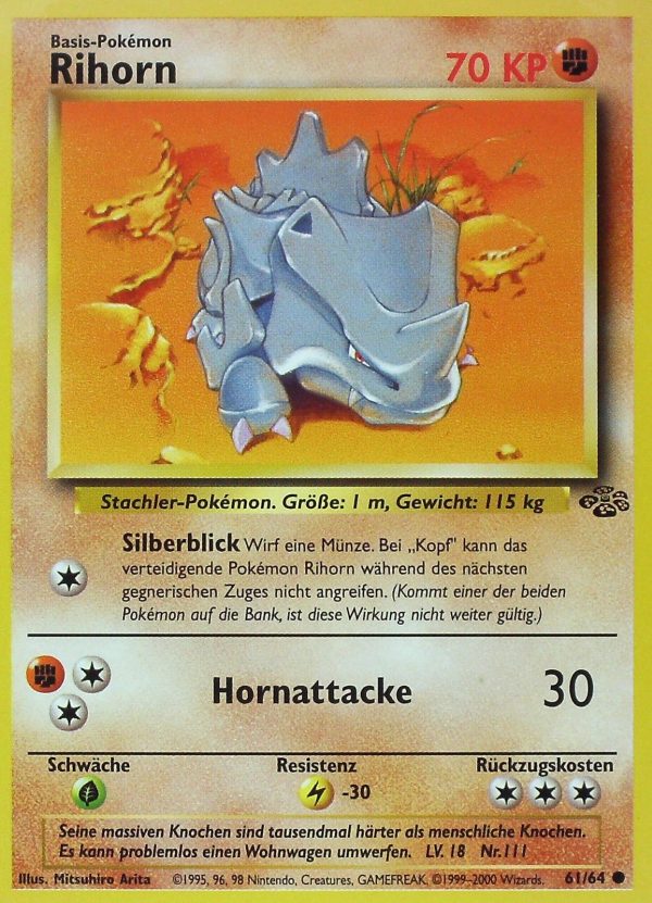 | Kaufen? | Kaufen Sie Ihre Rihorn Pokemon-Karte aus dem Dschungel-Erweiterung. |