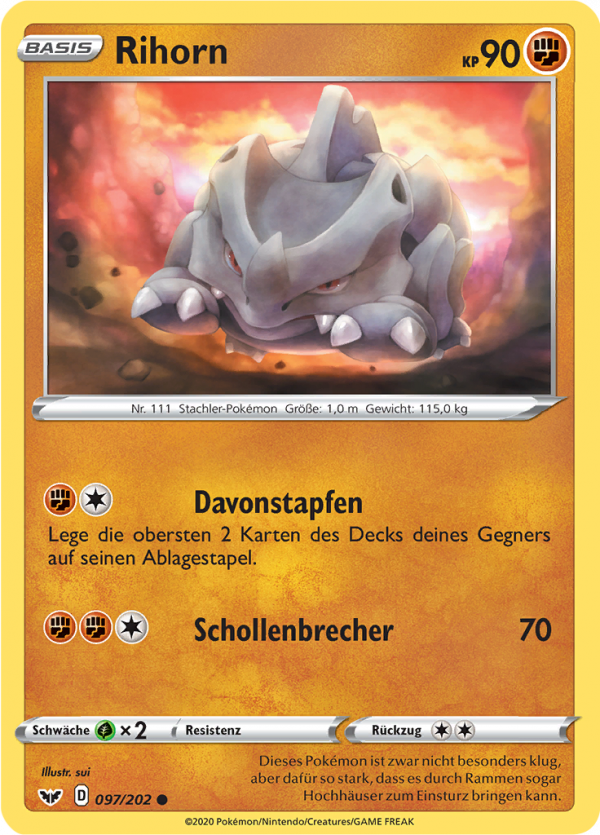 | Kaufen? | Kaufen Sie Ihre Rihorn Pokemon-Karte aus dem Schwert & Schild-Erweiterung. |