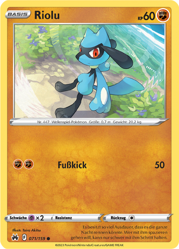 | Kaufen? | Kaufen Sie Ihre Riolu Pokemon-Karte aus dem Zenit der Könige-Erweiterung. |