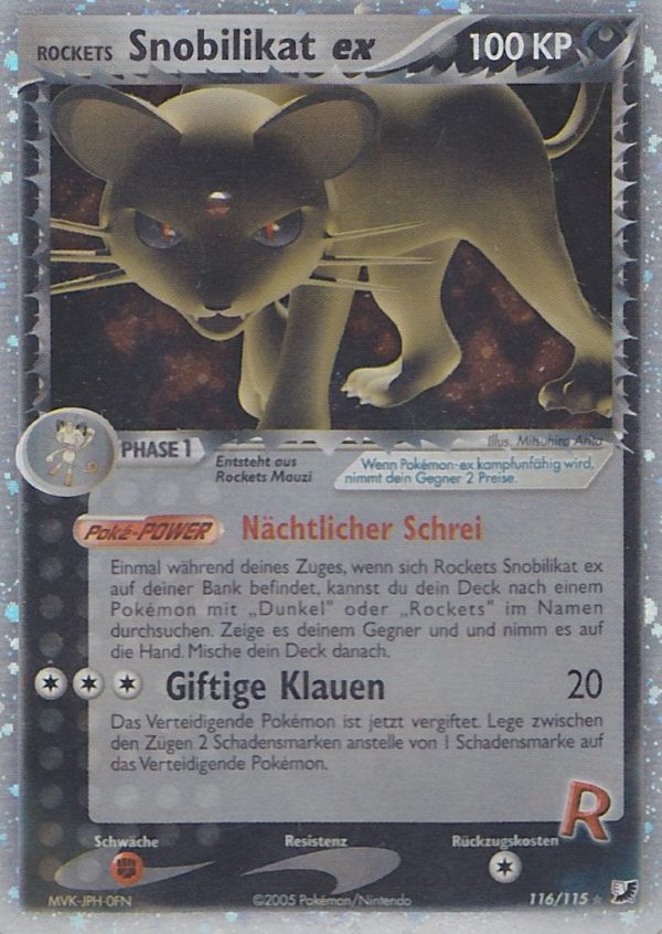 | Kaufen? | Kaufen Sie Ihre Rockets Snobilikat ex Pokemon-Karte aus dem Verborgene Machte-Erweiterung. |