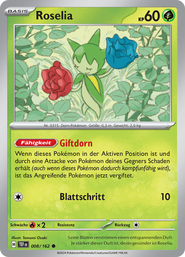| Kaufen? | Kaufen Sie Ihre Roselia Pokemon-Karte aus dem Gewalten der Zeit-Erweiterung. |