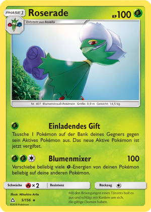 | Alle Karten | Sehen Sie alle Roserade-Pokémonkarten in einer Übersicht. |