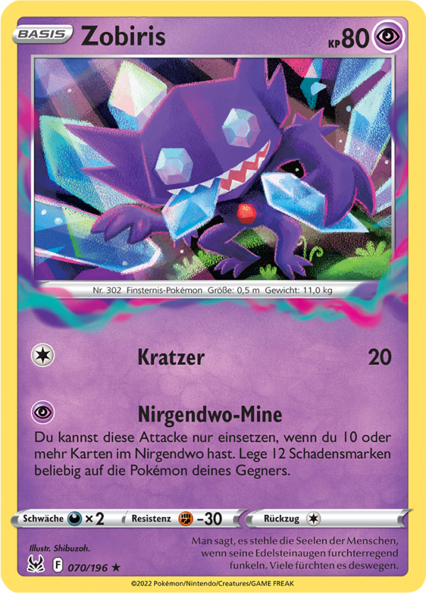 | Kaufen? | Kaufen Sie Ihre Zobiris Pokemon-Karte aus dem Verlorener Ursprung-Erweiterung. |