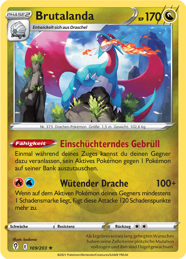 | Kaufen? | Kaufen Sie Ihre Brutalanda Pokemon-Karte aus dem Drachenwandel-Erweiterung. |