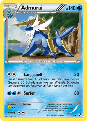 | Kaufen? | Kaufen Sie Ihre Admurai Pokemon-Karte aus dem Weisse Flammen-Erweiterung. |