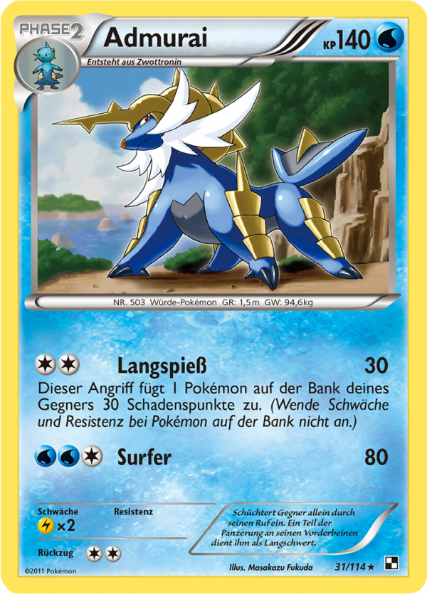 | Kaufen? | Kaufen Sie Ihre Admurai Pokemon-Karte aus dem Schwarz & Weiss-Erweiterung. |