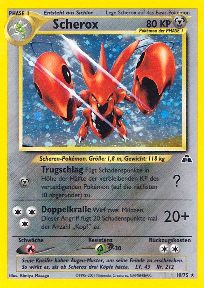 | Kaufen? | Kaufen Sie Ihre Scherox Pokemon-Karte aus dem Neo Entdeckung-Erweiterung. |