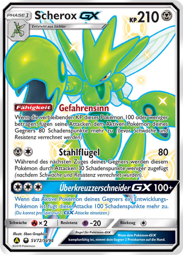 | Kaufen? | Kaufen Sie Ihre Scherox-GX Pokemon-Karte aus dem Verborgenes Schicksal - Schillernde Schatzkammer-Erweiterung. |