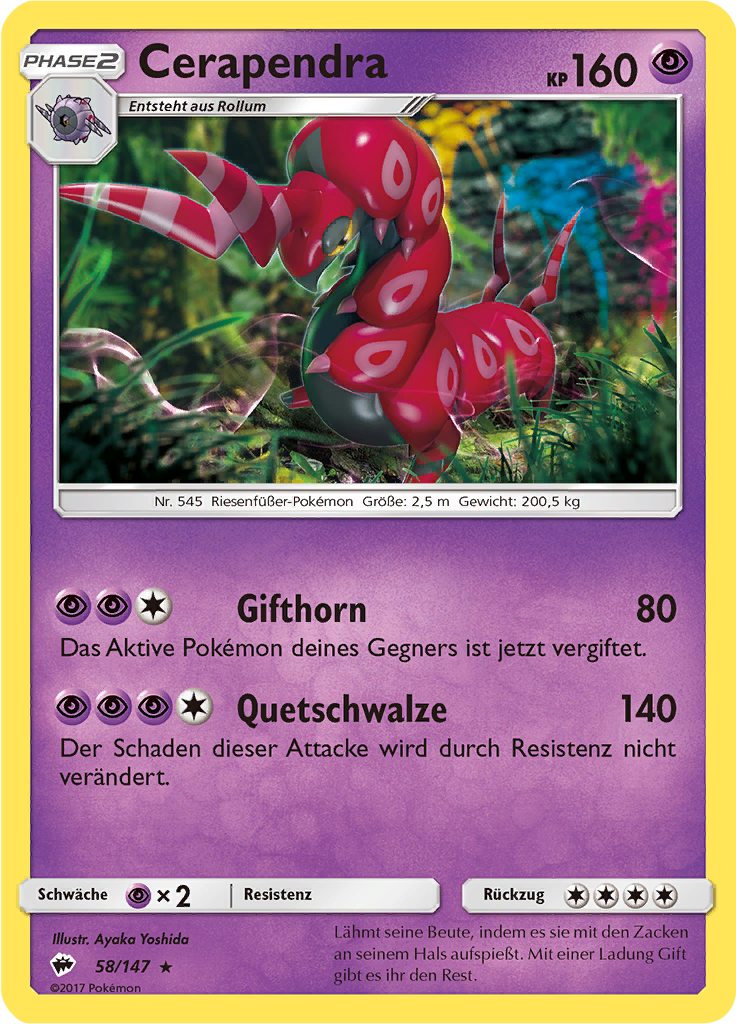 | Alle Karten | Sehen Sie alle Cerapendra-Pokémonkarten in einer Übersicht. |