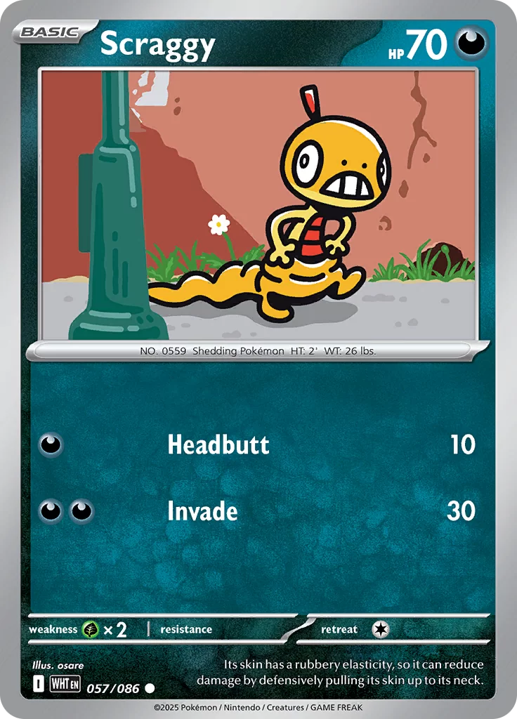 | Kaufen? | Kaufen Sie Ihre Scraggy Pokemon-Karte aus dem White Flare-Erweiterung. |