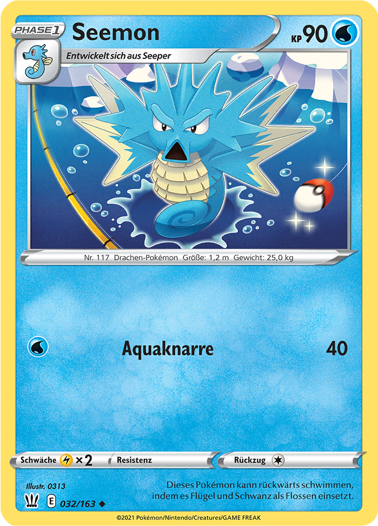 | Alle Karten | Sehen Sie alle Seemon-Pokémonkarten in einer Übersicht. |