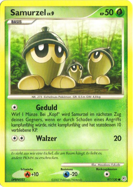 | Kaufen? | Kaufen Sie Ihre Samurzel Pokemon-Karte aus dem Diamant & Perl-Erweiterung. |