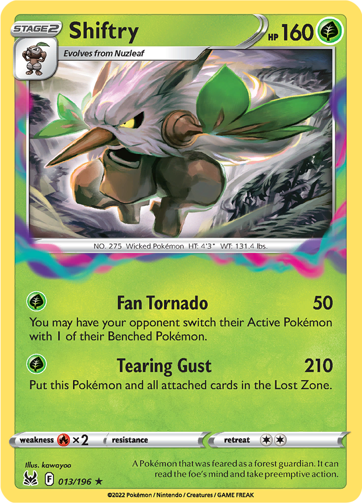 | Kaufen? | Kaufen Sie Ihre Shiftry Pokemon-Karte aus dem Lost Origin-Erweiterung. |