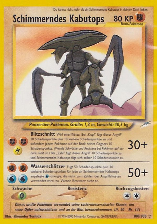 | Kaufen? | Kaufen Sie Ihre Schimmerndes Kabutops Pokemon-Karte aus dem Neo Destiny-Erweiterung. |