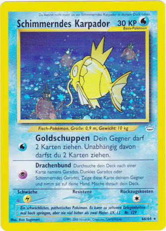 | Kaufen? | Kaufen Sie Ihre Schimmerndes Karpador Pokemon-Karte aus dem Neo Revelation-Erweiterung. |