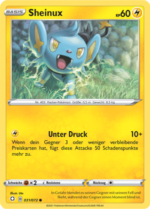 | Alle Karten | Sehen Sie alle Sheinux-Pokémonkarten in einer Übersicht. |