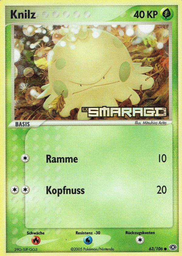 | Karten | Smaragd besteht aus 107 Pokémon Karten. |
