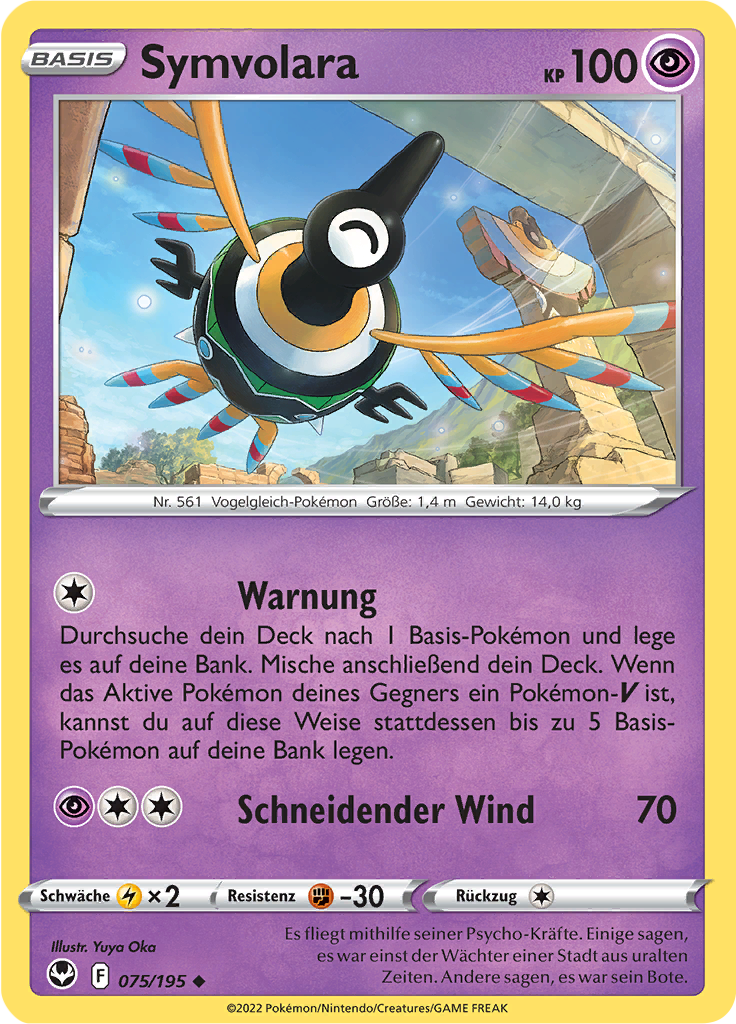 | Kaufen? | Kaufen Sie Ihre Symvolara Pokemon-Karte aus dem Silberne Sturmwinde-Erweiterung. |