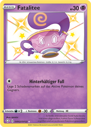 | Alle Karten | Sehen Sie alle Fatalitee-Pokémonkarten in einer Übersicht. |