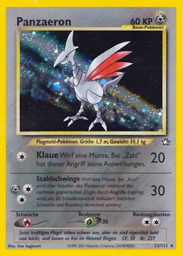 | Kaufen? | Kaufen Sie Ihre Panzaeron Pokemon-Karte aus dem Neo Genesis-Erweiterung. |
