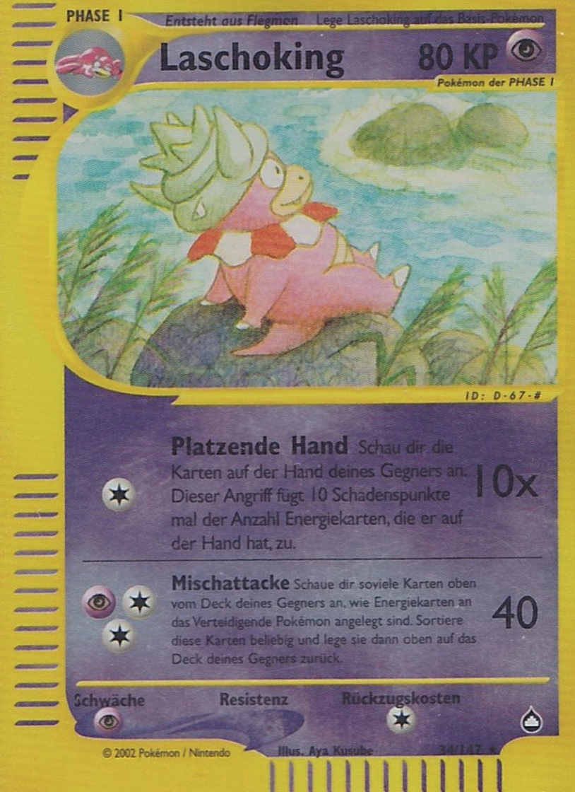 | Kaufen? | Kaufen Sie Ihre Laschoking Pokemon-Karte aus dem Aquapolis-Erweiterung. |