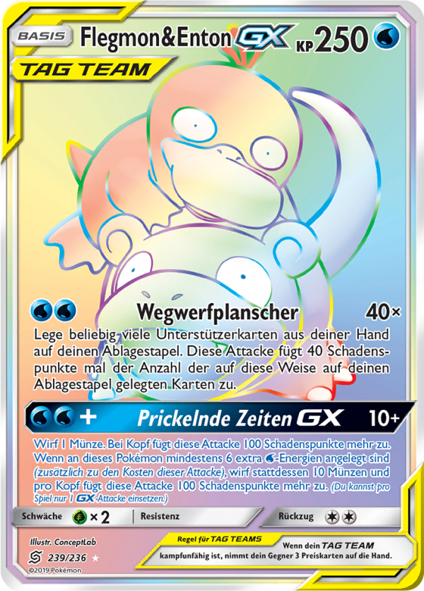 | Kaufen? | Kaufen Sie Ihre Flegmon & Enton-GX Pokemon-Karte aus dem Bund der Gleichgesinnten-Erweiterung. |