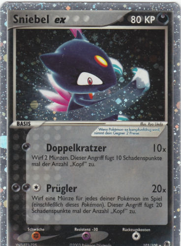 | Kaufen? | Kaufen Sie Ihre Sniebel ex Pokemon-Karte aus dem Rubin & Saphir-Erweiterung. |