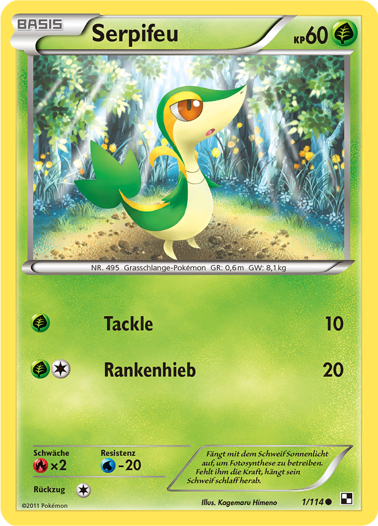 | Kaufen? | Kaufen Sie Ihre Serpifeu Pokemon-Karte aus dem Schwarz & Weiss-Erweiterung. |